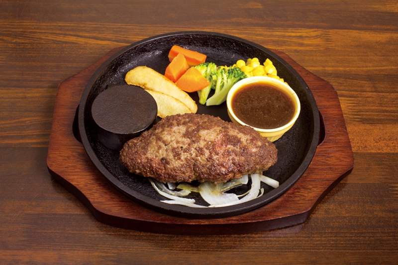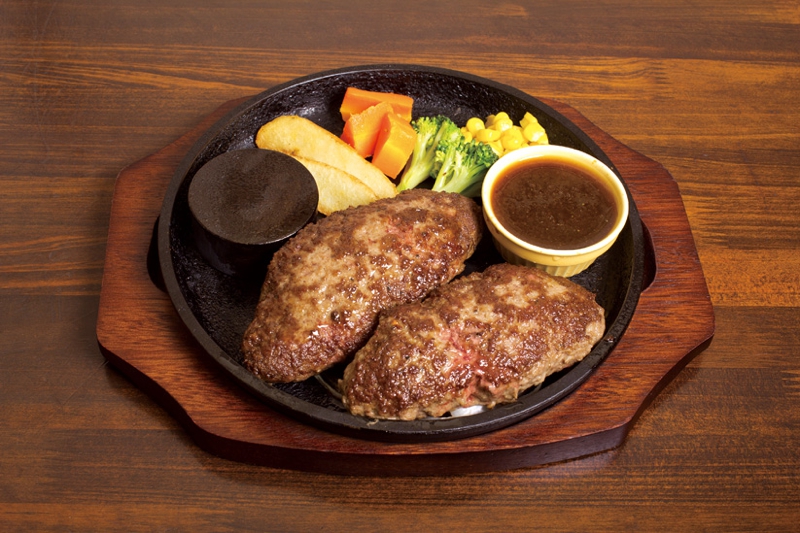 うまみのつまった国産牛を、手でこね合わせるステーキタイプのハンバーグです。