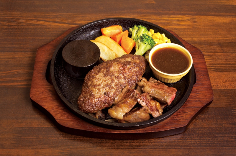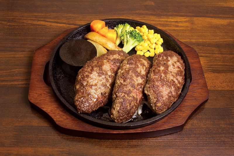 うまみのつまった国産牛を、手でこね合わせるステーキタイプのハンバーグです。